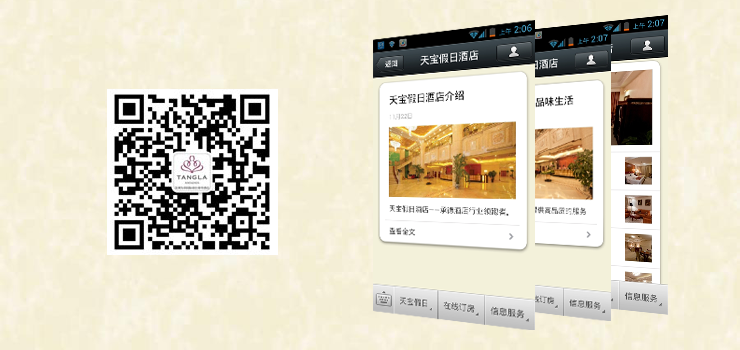 酒店 通过手机预订酒店,点餐等,不用排队,不用等候随到随住随吃。基于爱民微网平台开发的此公众账号,推送给用户各类酒店,餐饮信息,整合多家酒店,餐饮店铺,推荐给用户最好的酒店。微信公众账号吸引粉丝高达十万余人,推送的几家酒店,餐饮店铺当月销售额上涨了百分之一百五,爱民微网让微信营销势不可挡。